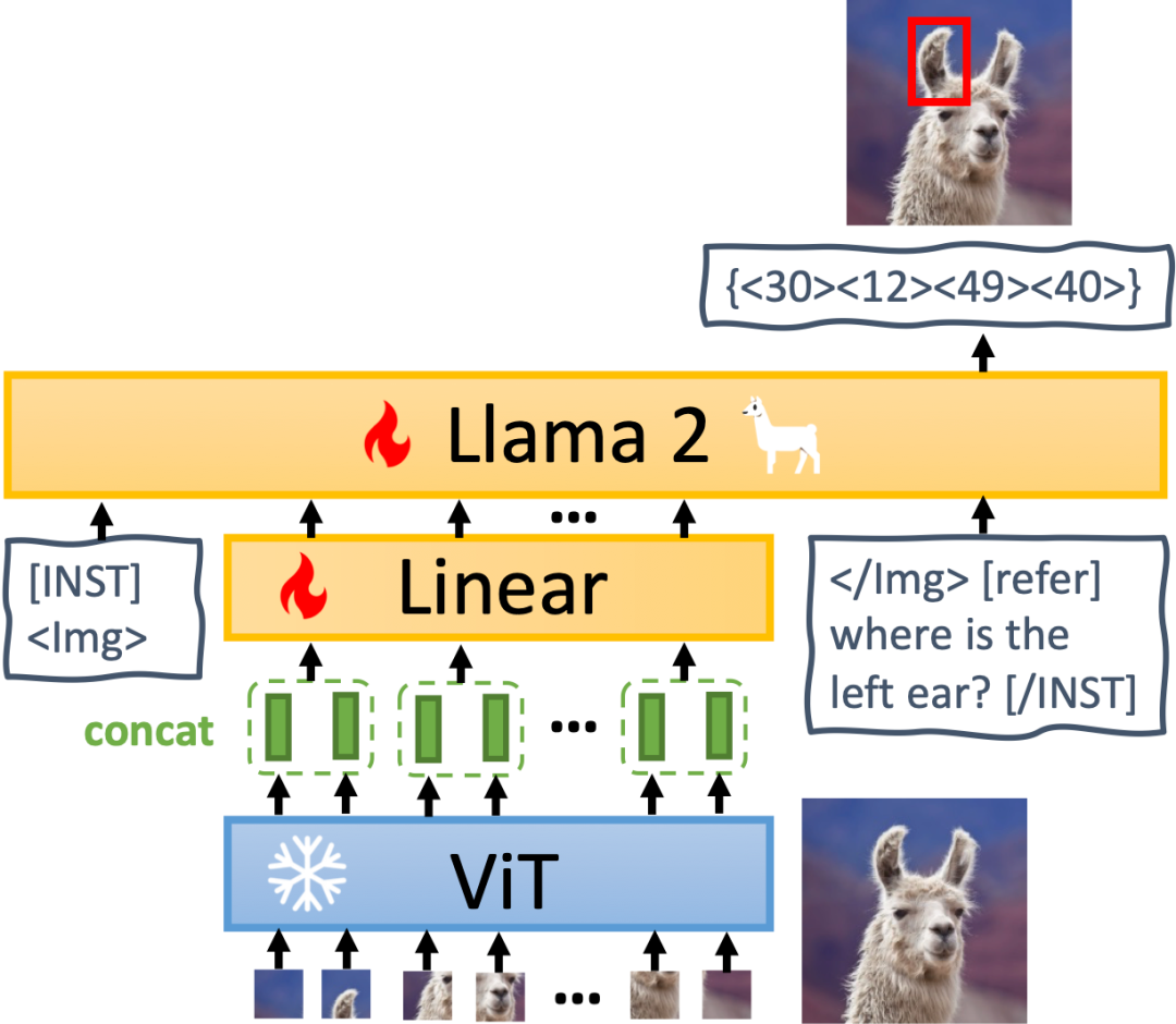 大型语言模型:MiniGPT-v2 采用开源的 LLaMA2-chat (7B) 作为语言模型主干。在该研究中,语言模型被视为各种视觉语言输入的统一接口。本文直接借助 LLaMA-2 语言 token 来执行各种视觉语言任务。对于需要生成空间位置的视觉基础任务,本文直接要求语言模型生成边界框的文本表示以表示其空间位置。