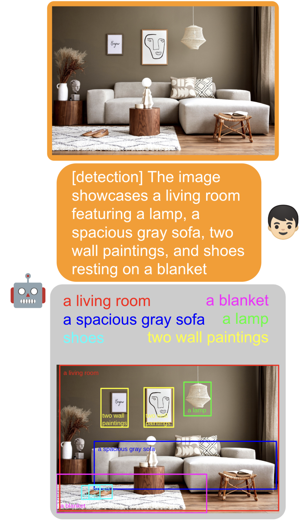 Mini-GPT不但可以识别图中的物体,还能标注不同物体所在的区域。